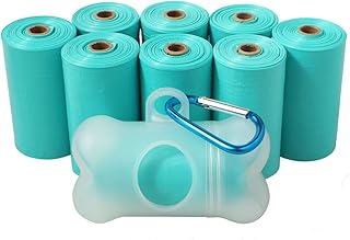 POQOD Pet Waste Bags - Leak-Proof Dog Waste Bags, Clean up Poop Bag Refills (10 Rolls / 150 Count, Greenish-Blue) Includes Free Bone Dispenser and Leash Clip