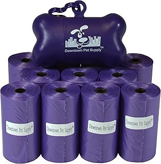 220 Pet Waste Bags, Dog Waste Bags, Bulk Poop Bags on a roll, Clean up poop bag refills - (Color: Purple) + FREE Bone Dispenser, by Downtown Pet Supply by Downtown Pet Supply