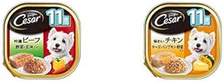 【セット買い】11歳からのシーザー 吟撰ビーフ ドッグフード 100g×24 (まとめ買い) & シーザー シニア犬用 11歳からの 味わいチキン チーズ・パンプキン・野菜入り 100g×24個 (まとめ買い) [ドッグフード・ウェット]