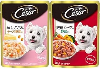 【セット買い】シーザー パウチ 成犬用 厳選ビーフ入り チーズ・野菜入り 70g×16個 (まとめ買い) [ドッグフード・ウェット] & パウチ 成犬用 蒸しささみ チーズ・野菜入り 70g×16個 (まとめ買い) [ドッグフード・ウェット]
