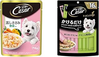 【セット買い】シーザー パウチ 成犬用 蒸しささみ チーズ・野菜入り 70g×16個 (まとめ買い) [ドッグフード・ウェット] & シーザー トッピング ドッグフード あじわいチキン味とチキン&野菜味 (12g×16本)