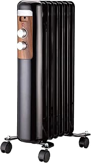 東京Deco オイルヒーター 7枚フィン メカ式 ブラック 1200W 木目調 転倒オフスイッチ付き 高さ62cm 6畳~8畳 [1200/700/500W 3段階切替式] 温度調整 暖房 冬 ヒーター 省エネ 電気ストーブ ライトウッド d000