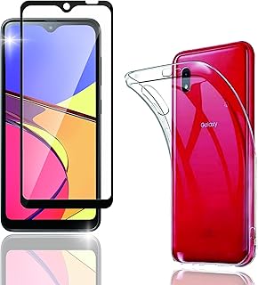 【1枚 For Galaxy A20 / Galaxy A21 / SC-42A / SC-02M / SCV46 ガラスフィルム + Galaxy A20 / Galaxy A21 ケース クリア カバー】Galaxy A20 フィルム 日本旭硝子素材AGC 硬度9H 指紋防止 飛散防止 強化ガラス + 透明 ソフト シリコン TPU 衝撃防止 黄変防止 散熱加工 Qi充電対応 軽量+ストラップホール付属 ネックストラップ付 galaxy A20