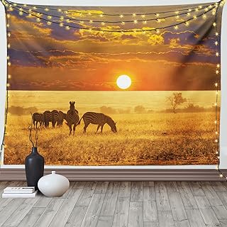 Ambesonne African Decorationsコレクション、グループのZebra on the West African Safari Territory at sunset horizon Tropicフォト、ベッドルームリビングルーム寮壁吊りタペストリー、60 x 40インチ、オレンジ