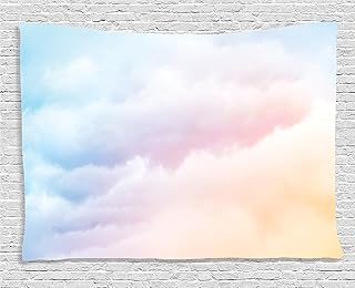 Ambesonneアパートインテリアコレクション、ふわふわDreamyグラデーションFadedパステルクラウドEtherealフォグサブライムレインボーFeatured装飾、ベッドルームリビングルーム寮壁吊りタペストリー、60 x 40インチ、ブルーピンク