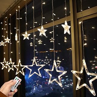 イルミネーション LEDライト カーテンライト USB 式 138球12個星 クリスマスライト クリスマス飾り 星型ライト 窓飾り 8種類パターン 防水 LED バッテリーボックス付き (電球色)