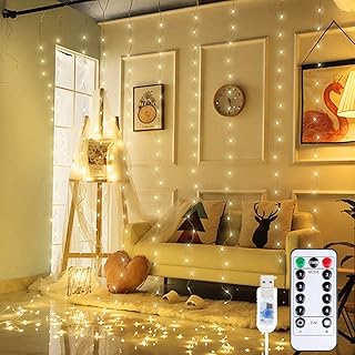 Anpro カーテンライト 、ストリングライト 300 LED電球 8モード ウォームホワイト 3x3m 装飾ウィンドウバルコニーウィンドウパーティー結婚式クリスマス [エネルギー効率クラスA+]