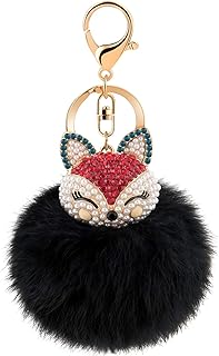 JOUDOO ラビットボールキーチェーン ラインストーン付きキツネヘッドキーリング GJ-001 (ブラック1)