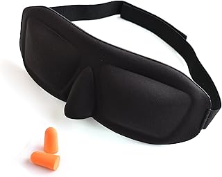 KAOKU アイマスク 立体型 3D 軽量 安眠 睡眠 旅行 飛行機 休憩 仮眠 眼精疲労 疲労回復に最適 サイズ調節 耳栓付き (ブラック1)