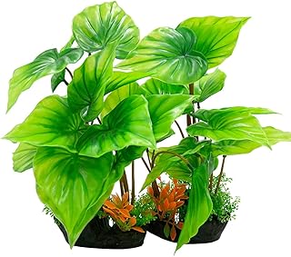 Aquarium Plants Fish Tank Decorations Large 11.8inch Plastic Artificial Plant Goldfish Waterscape Fish Hides Reptile Decoration (D11-Green)