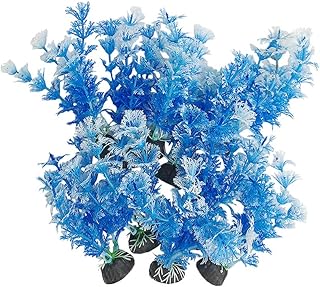 10Pcs/4inch/Aquarium Plants Fish Tank Decorations Plastic Artificial Plant Goldfish Waterscape Fish Hides Small-Size Set (Blue-Aquatic Plants)
