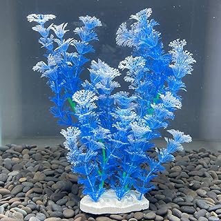 Aquarium Plants Fish Tank Decorations 8~9inch/Tall Plastic Artificial Plant Goldfish Waterscape Fish Hides (Blue/1pcs)