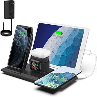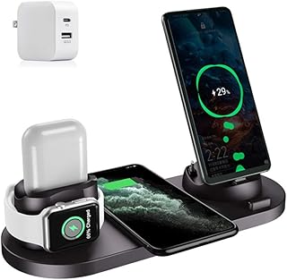 ワイヤレス充電器【PSE認証済み】 有線充電器 2021年改善版 Quick Charge 3.0アダプター付属 TYPE-C 6in1 Qiワイヤレス充電スタンド Airpods充電器/Apple Watch充電器 Qiスマホ機種全対応 iPhone X/XS/XR/XS Max/8/8 Plus/iPhone 11/pro/pro max/ iPhone12 Pro Max/12 Pro/12/SE2 Apple Watch 2/3/4/5/6/SE Airpods 2/Pro Galaxy S10/S10 Plus/S10e/Note10/Galaxy S9/S9 Plus/Note8/S8/S8 Plus/S7/S7 Edge/S6 Edge Plus ワイヤレスチャージャー 急速充電 5W/7.5W/10W出力 置くだけ充電 (ブラック)