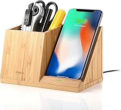 Veelink ワイヤレス充電器 Qi認証 置くだけ充電 ワイヤレス充電スタンド デスクオーガナイザー付 小物入れ アイホン スマホスタンド充電器付き ワイアレス充電器 iphone 急速 置き型充電器 ワイヤレスチャージャー 竹製充電・収納 qi スタンド qi 充電器 ペンホルダー ペン立て ウッド調 ペンスタンド付 卓上収納ケース 高品質 高級感 木目調 木製 iPhone11/11 Pro/11 Pro Max/X/XS/XR/8/SE 2020, Galaxy Note10/8/Note 20/S9/S20, Nexus4/5/6, Sony SZ2/Xperia XZ3, HUAWEI Mate 20 proなどQI機種対応