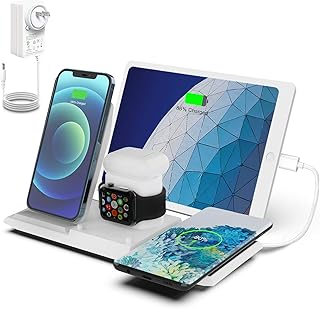 「2021年最新版」NANAMI 5in1 ワイヤレス充電器 Qi認証 5台同時 充電スタンドiWatch充電器収納可能 iPhone 13/13 Pro/13 Mini/12/12 Pro/12 Mini/SE2/11/11 Pro/Xs/XR/Xs Max/X/8/8 Plus、Galaxy S21(Ultra 5G)/S20/S10/S10+/S9/S9+/S8/S8+/Note 10/Note 9 、AirPods 2/Pro 、Galaxy Buds Pro/+ 他のQi機種対応 出力36W超強力アダプター付属 7.5W/10W/15W Qiuck Charge 置くだけ充電 お歳末&冬のギフト 白
