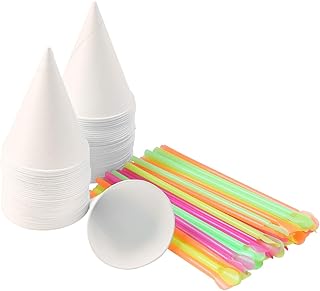 Ruisita スノー コーン カップ コーン ウォーター カップ シェーブ アイス カップ スノー コーン スプーン ストロー付き ホーム カンパニー 6オンス