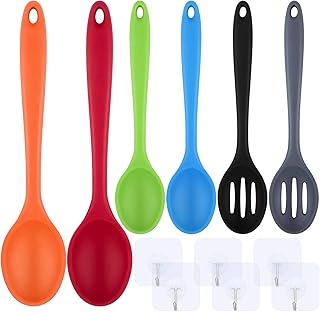 Ruisita 6ピースシリコンノンスティックミキシングとスロットスプーンセット 6ピース透明フック ノンスティック耐熱スプーン かき混ぜ 混ぜる サービング用