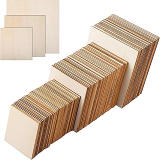 Ruisita 未完成の正方形木製ピース100個 3サイズ ブランク木製スライス コースター DIY工芸 ホームデコレーション絵画