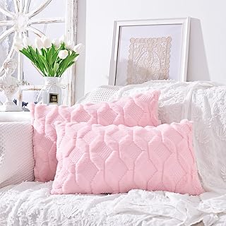 SEVEN HITECH ベルベットボーホー装飾スロー枕カバー 12x20インチ ソファ用 ソフトプラッシュ正方形クッションカバー 高級スタイル ソファ/ベッドルーム/リビングルーム/車用 30x50cm ピンク
