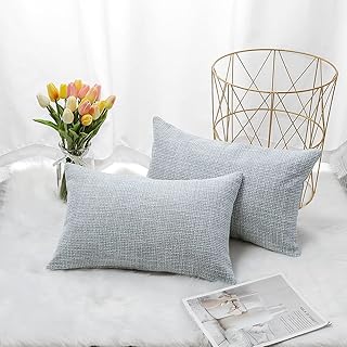 OTOSTAR リネン枕カバー2枚セット 装飾用正方形枕カバー クッションケース 12x20インチ ホームインテリア ソファ 寝室 車 30x50cm ブルーグレー