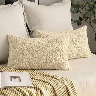 MIULEE クリスマスパック2枚 装飾新ラグジュアリーシリーズスタイル クリームホワイトフェイクファー スロー枕カバー スーパーソフトウール枕カバー クッションカバー ソファ/ベッドルーム/リビングルーム用 12x20インチ 30x50cm