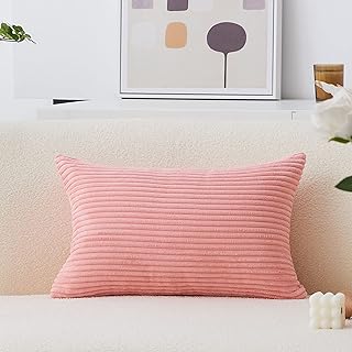 Home Brilliant 装飾クッションカバー ストライプベルベット コーデュロイクッションカバー ホリデーバレンタイン用 コーラル12x20インチ 30x50cm