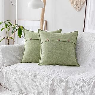 Home Brilliant クッションカバー 装飾ファームハウス 素朴な黄麻布リネンクッションカバー ソファ/ソファ/ベッド/夏用 18x18インチ 2枚セット グラスグリーン