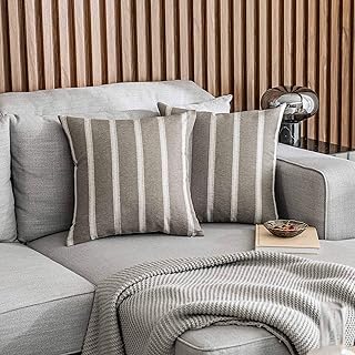 Home Brilliant レースストライプ装飾スロー枕カバー リネンクッションカバー ソファ用 18 x 18インチ(45 x 45cm)、タン 2枚セット
