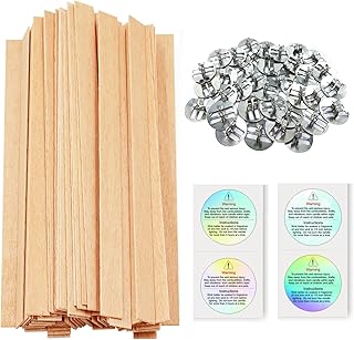Visgaler 木製キャンドル芯 100個 厚い木製芯 キャンドル作成用 鉄製スタンド&警告ラベル100個 自然環境に優しい煙なしキャンドル芯 キャンドル作り用