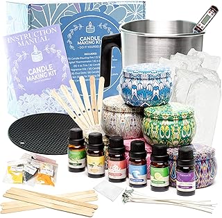 キャンドル作成キット - 大豆キャンドル作成キット 大人初心者用 - キャンドル作成用品 - キャンドル注ぐポット 大豆ワックス キャンドル芯 6フレグランスオイル キャンドル作成用 - 大人向けアートとクラフト