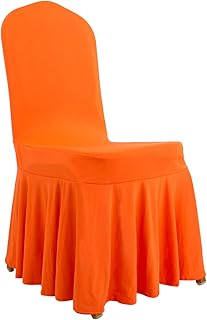 KKONION ダイニングチェアカバー スパンデックス 取り外し可能 ロングスカート シート スリップカバー 防塵 洗濯可能 結婚式用 6 pieces set オレンジ 9476E-2Ce-Cc98-6_Pie