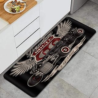 EILANNA キッチンラグ、ヴィンテージレトロオールドガレージカールート66アメリカンロードオートカルチャー、滑り止め台所マット, 耐磨耗性快適なフローリングのドアマット,フロアマット, 家、オフィス、流し、掃除易い 台所マット 45 x 120