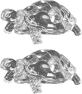 EXCEART 2個クリスタルタートル像風水vastuクリアクリスタル亀の置物ガラスカメ彫刻車のデスクトップ装飾平和成功繁栄