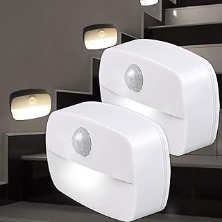 AmmToo Ledセンサーライト 昼光色 電池式 足元灯 フットライト 人感センサー 配線不要 ナイトライト 明暗光センサー 自動点消灯 冷蔵庫照明 玄関 クローゼット 室内ルームライト 小さい 壁掛け 電池別売り 2個セット(昼光色)