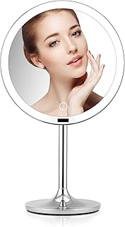 AMZTOLIFE 化粧鏡 鏡 卓上 卓上ミラー 女優ミラー スタンドミラー「ledライト付き 人感センサー搭載 無階段調光 360度回転 USB充電式」直径22cm 日本語取扱説明書付き (シルバー)