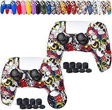 JYXETOV PS5 コントローラー カバー 2個(28オプション)、無料の8ボタンキャップ、シリコーン保護、オリジナルの充電器で充電できます、滑り止めデザイン、両面印刷パターンに適しています